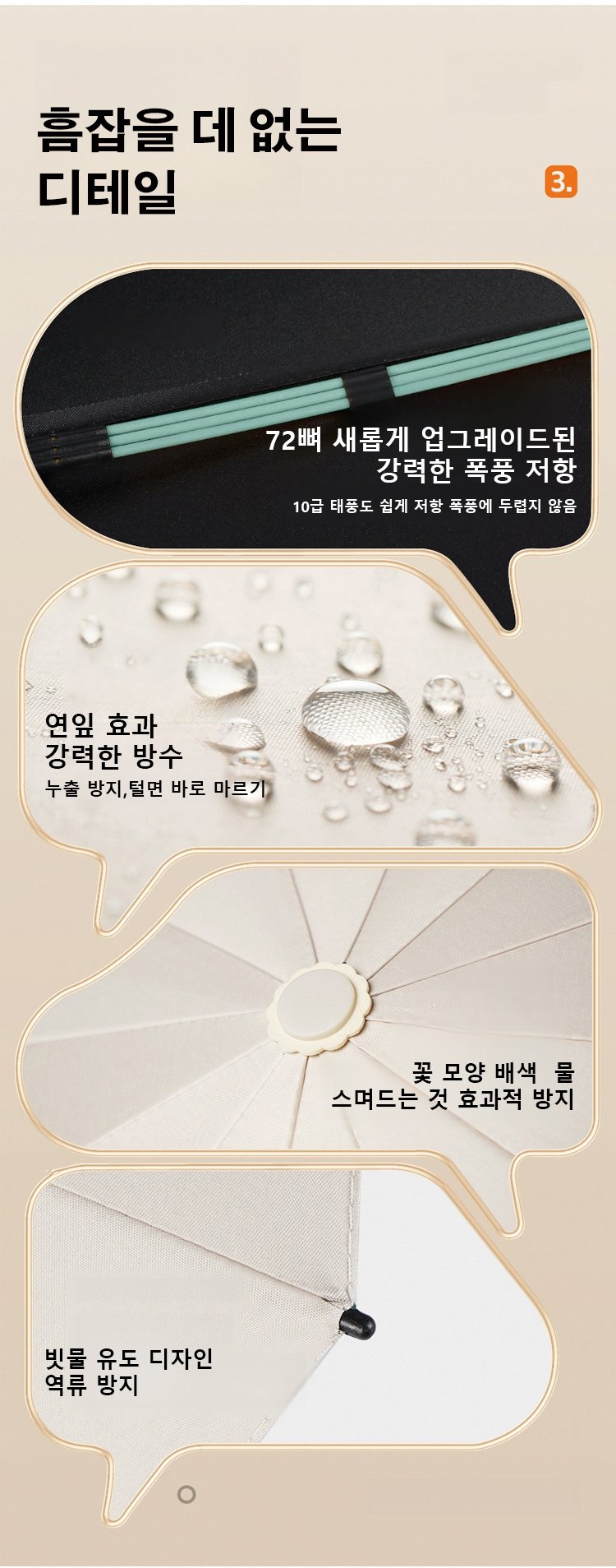 72뼈 자동 블랙 고무 자외선 차단 우양산